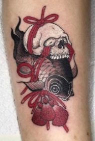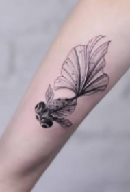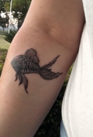 黑色金鱼纹身 男生手臂上黑色的金鱼纹身图片