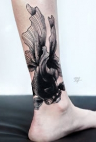水墨金鱼纹身 情侣小腿上可爱的金鱼纹身图片