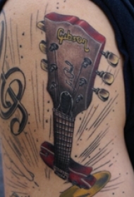 吉普森吉他纹身 男生大臂上彩色的吉他纹身图片