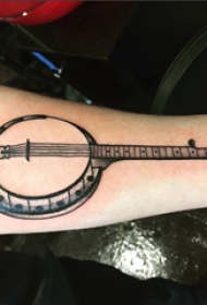 手臂纹身素材 女生手臂上黑色的吉他纹身图片
