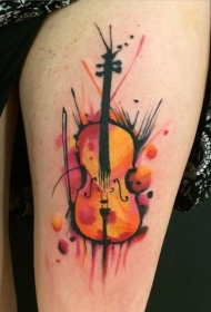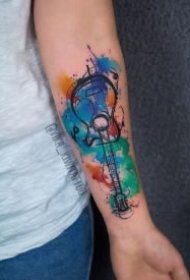 水彩吉他纹身 小清新水彩风格的吉他纹身图案