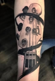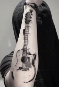 手臂纹身素材 男生手臂上黑灰的吉他纹身图片