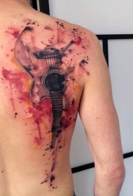 肩部原始彩绘大吉他纹身图片