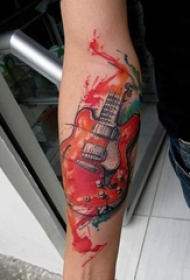 电吉他纹身 男生手臂上彩色的吉他纹身图片