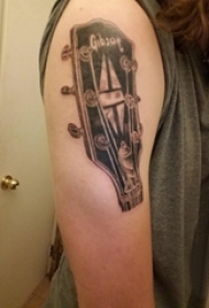 男生手臂上黑灰素描创意文艺吉他板纹身图片