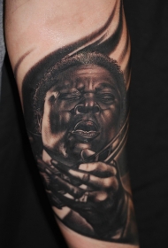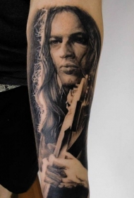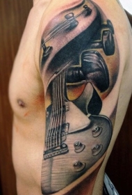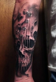 独特的组合黑白骷髅与吉他手臂纹身图案