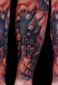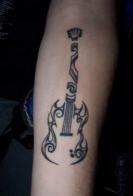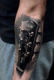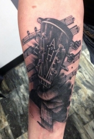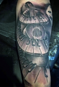 独特设计的黑白吉他与钢琴键手臂纹身图案