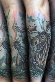 手臂彩色老派风格的麋鹿弹吉他纹身