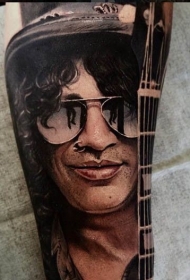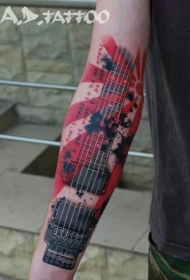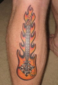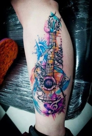 小腿现代传统风格的彩色泼墨吉他纹身图案