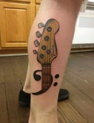 腿部个性吉他纹身