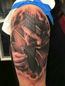 大臂3D风格写实的吉他纹身图案