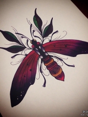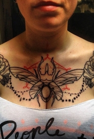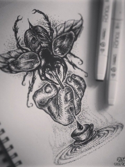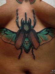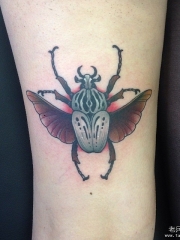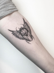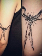男生手臂上黑色简约线条创意昆虫纹身图片