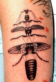 纹身虫 男生大腿上昆虫和骷髅纹身图片