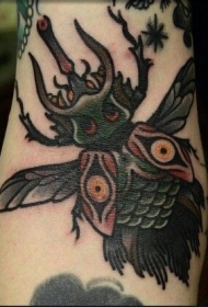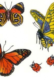 漂亮的彩色蝴蝶和甲虫纹身图案手稿