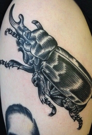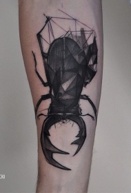 手臂雕刻风格黑色几何大臭虫与角纹身图案