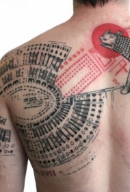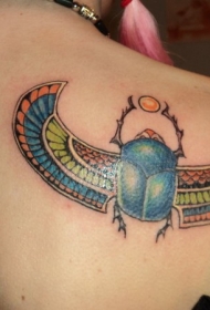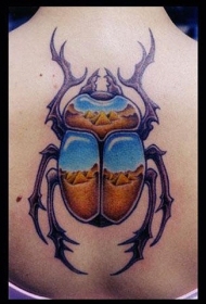 背部漂亮的彩色生物力学机械甲虫纹身图案