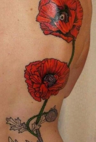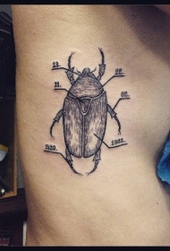 侧肋雕刻风格黑色甲虫与数字纹身图案