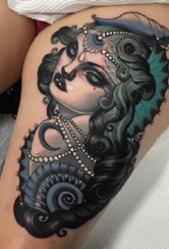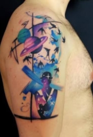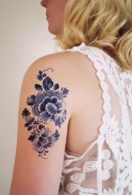 创意黑色点刺和蓝色搭配的纹身欣赏