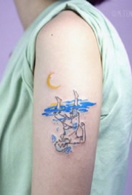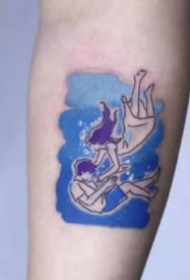 纹在手臂上的一组蓝色系小可爱纹身图片