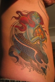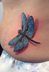 好看逼真的蓝色蜻蜓侧肋纹身图案