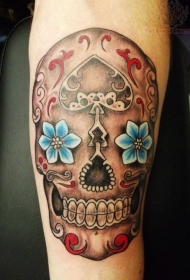 手臂奇妙的彩色树与眼睛和蓝色背景纹身图案