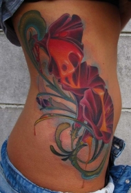 浅粉色藤蔓和蓝蝴蝶纹身图案