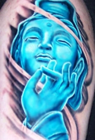 大臂红色怪物狮子与蓝色的舌头纹身图案