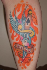 侧肋燕子和蓝色的云花卉字母纹身图案