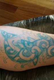 男生小腿上蓝色几何抽象线条小动物锤头鲨纹身图片