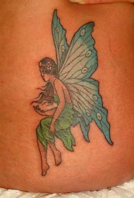 蓝色蝴蝶和部落图腾彩色纹身图案