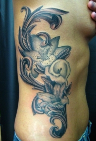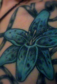 背部象神伽内什跳舞和蓝色莲花纹身图案