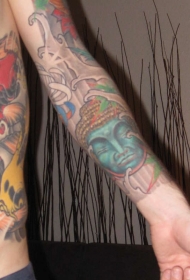 手臂奇怪的藤蔓与蓝色雪花彩色纹身图案