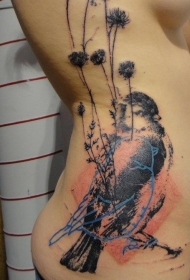 侧肋好看的鸟类和蓝色鸟轮廓纹身图案