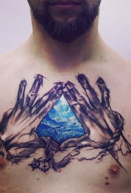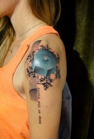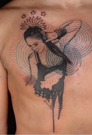 胸部彩色女生肖像与蓝色圆圈和星星纹身图案