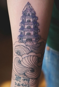 手臂恐怖风格彩色蓝眼睛怪物纹身图案