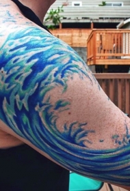 大臂简单的蓝色波浪纹身图案