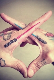 蓝色和红色光剑手指纹身图案