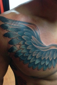 胸部蓝色幻想翅膀纹身图案