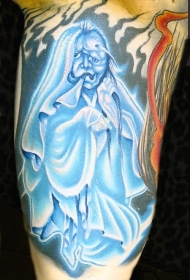 奇妙的蓝色幽灵在森林里纹身图案