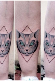 神秘的猫脸蓝色眼睛和几何图形纹身图案