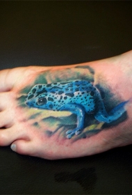 脚背逼真的蓝色有毒青蛙纹身图案