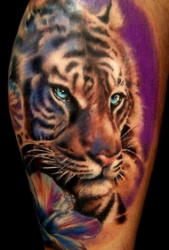 水彩风可爱的蓝眼睛老虎纹身图案