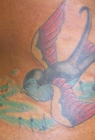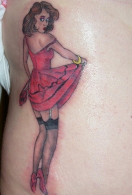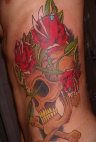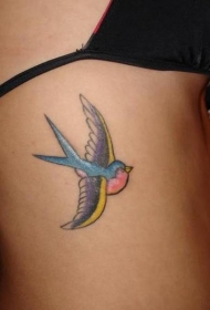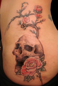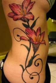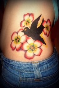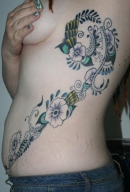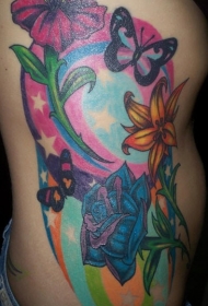 腰侧彩色杂色的花朵和蝴蝶纹身图案