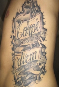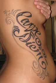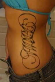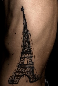腰侧黑色倾斜埃菲尔铁塔纹身图案