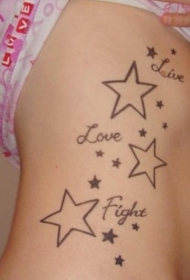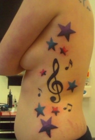 腰侧彩色高音谱号的五角星和旋律纹身图案