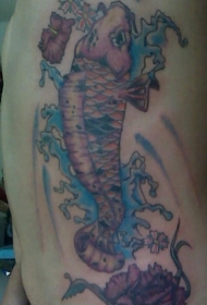 腰侧彩色笨拙的鲶鱼在水中纹身图案