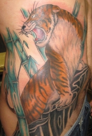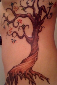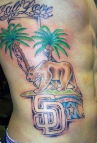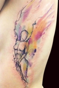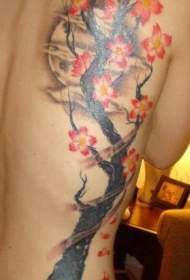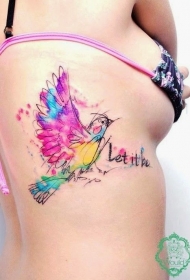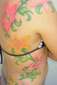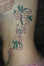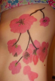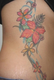 侧肋美丽的花朵与星星和蝴蝶纹身图案