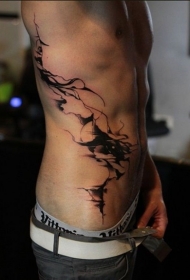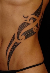 优雅的黑色波利尼西亚图腾侧肋纹身图案