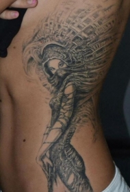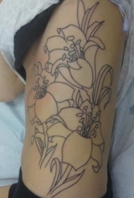 侧肋黑白美丽的兰花蝴蝶纹身图案