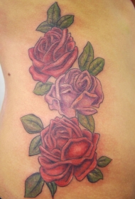 肋骨彩色骷髅头_红色花朵_骨头纹身图案